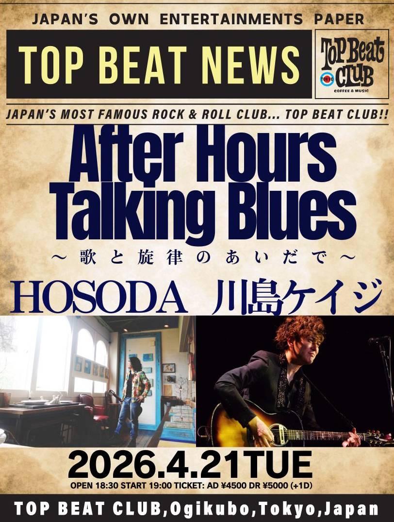 4月21日(火)荻窪 TOP BEAT CLUBにて開催される『After Hours Talking Blues 歌と旋律のあいだで』